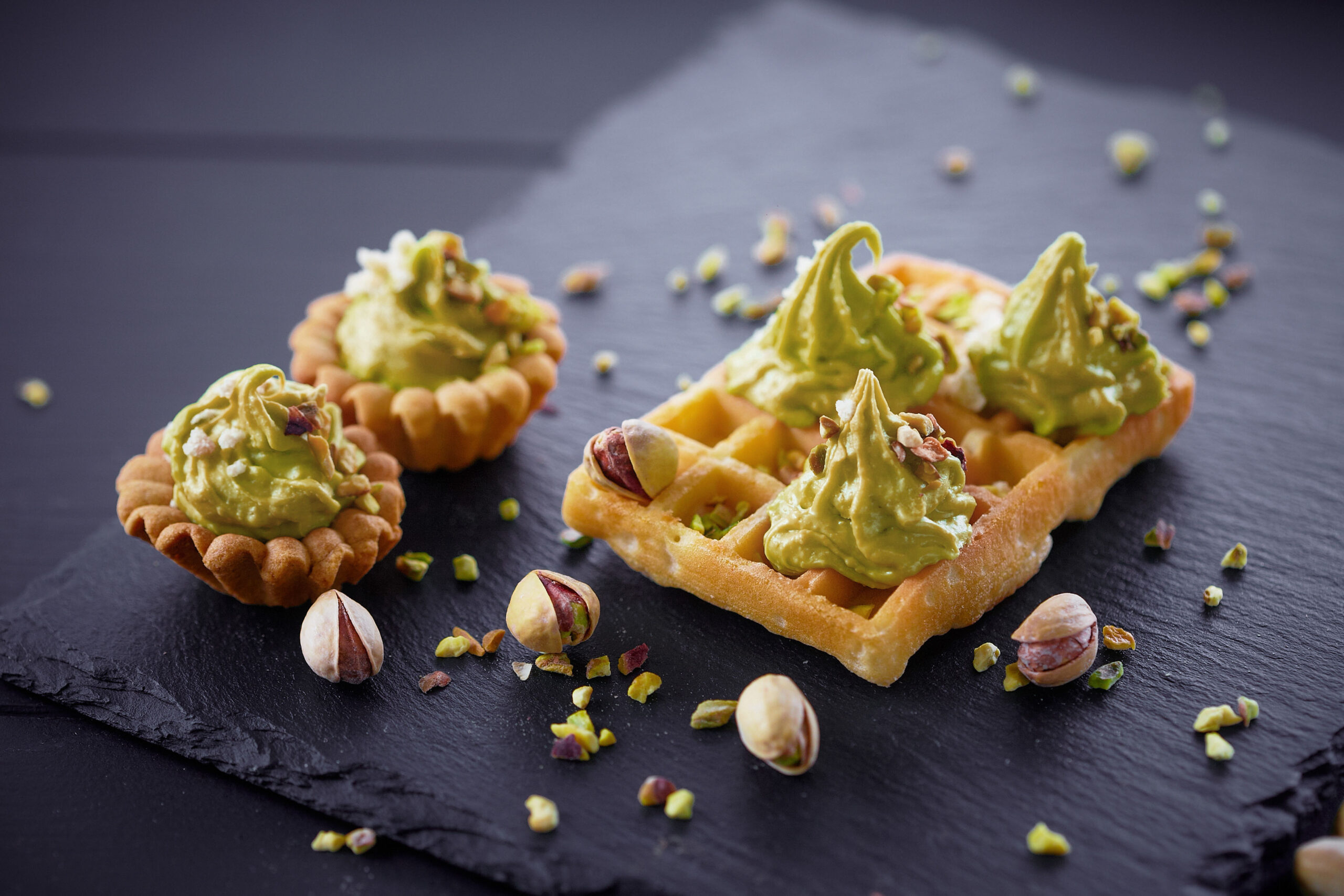 - Krem o smaku pistacjowym z waflami