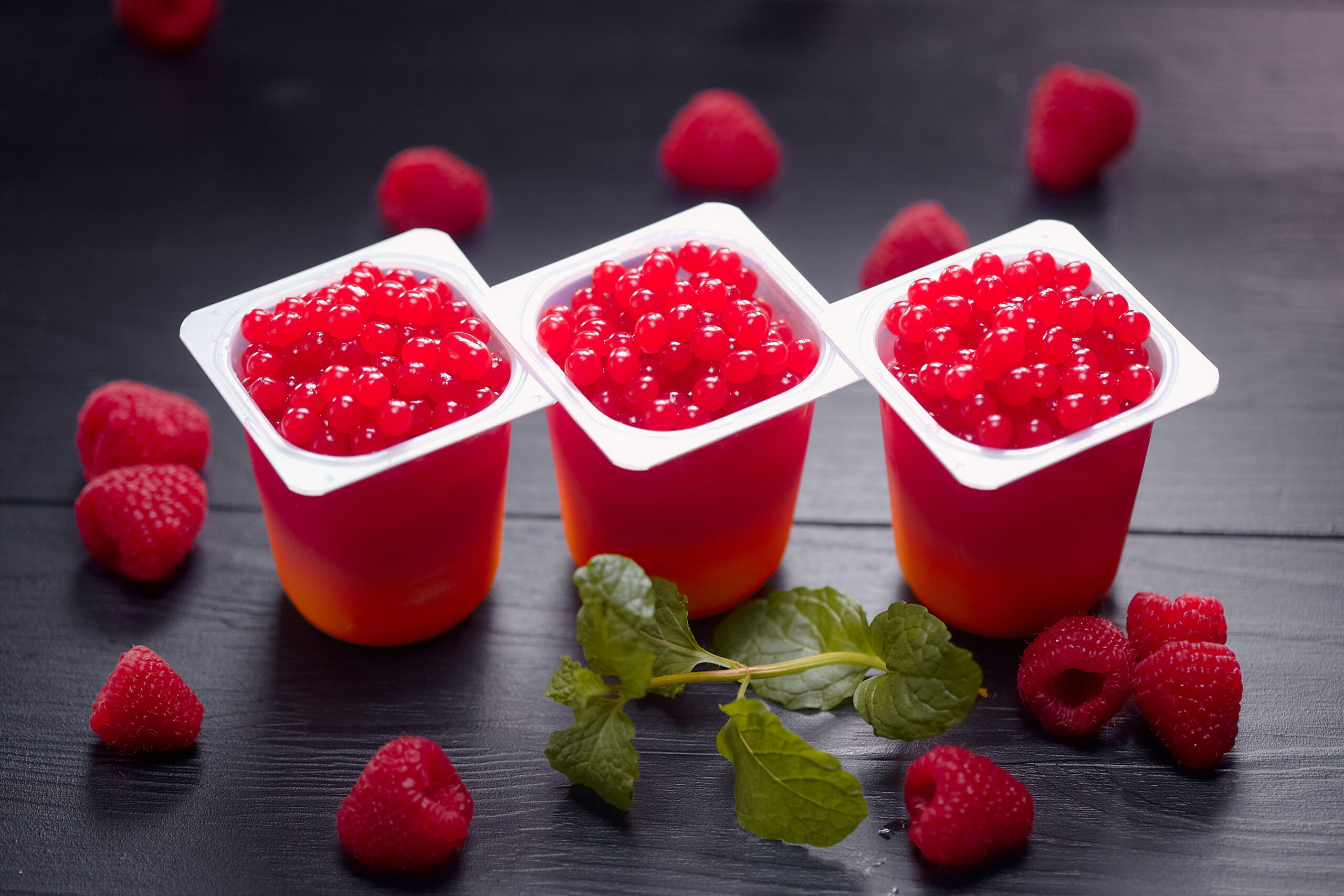 „ POP&JOY - Malina” - kulki żelowe z płynnym środkiem w zalewie – niezwykła zabawa dla każdego! Ciekawe, innowacyjne kulki żelowe do wykorzystania podczas spotkań i imprez w celu uatrakcyjnienia między innymi napojów i drinków. Mogą zachwycać i szokować. POP&JOY to ciekawa kompozycja wizualna i smakowa - możliwość zawieszenia w napoju - nowatorstwo oraz nieograniczona ilość wariantów Zastosowanie: - torty, gofry, naleśniki, desery, lody, ciastka deserowe sztukowe, napoje (soki, herbaty, drinki alkoholowe). Stosować po odsączeniu zalewy. Wielkość truskawkowych kulek żelowych z płynnym środkiem: 9mm (+-1).